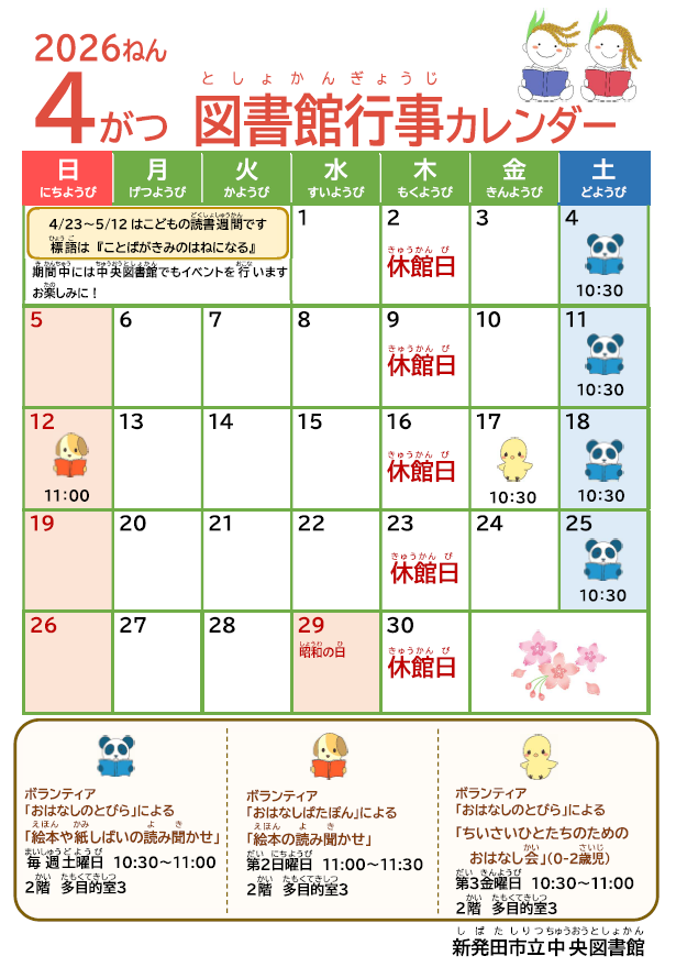 ボランティア「おはなしぱたぽん」による【絵本のよみきかせ】