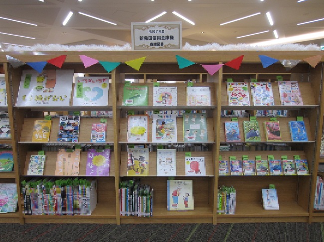 2階児童コーナーでは、今年度、新発田信用金庫様からの寄附金で購入した