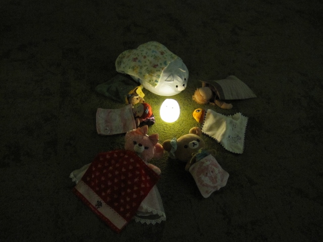 ぼうけんをおえたぬいぐるみたちはつかれたのか、ぐっすりねむりました。