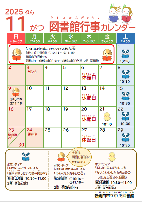 ボランティア「おはなしのとびら」による【絵本や紙しばいのよみきかせ】
